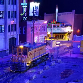 Mon coup de cœur est le réseau de Andy Gauley, en HO. Installé dans une pièce à part, aux stores baissés, l’ambiance grunge de Seattle la nuit était absolument magique. Et Andy, très gentiment, nous a confié les manettes de son réseau.