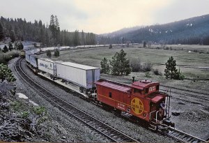 Trailer-on-flatcar, chargement de remorques routières sur des wagons plats. Introduit en Amérique du nord durant les années 1950, il est progressivement délaissé lors de l’avènement de la containeurisation. Il reste des trains de TOFC à l’est du Mississippi, combinés avec du trafic intermodal.